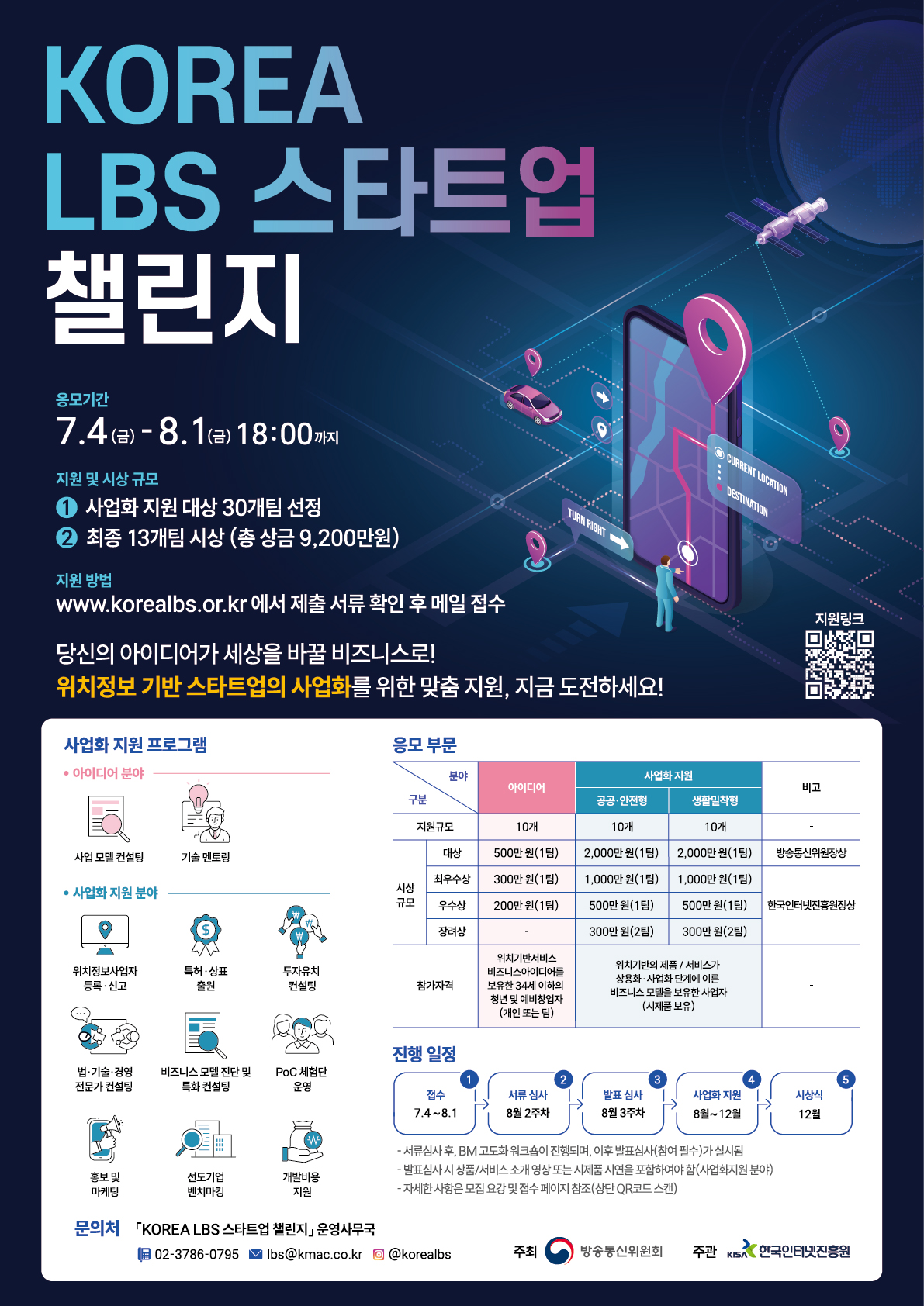방송통신위원회와 한국인터넷진흥원이 추진하는 '2025년 KOREA LBS 스타트업 챌린지' 안내