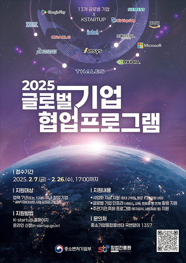 글로벌 기업과 협업하여 창업기업의 글로벌 혁신 성장을 지원하는 「2025년 글로벌 기업 협업 프로그램」에 참여할 창업기업 모집계획을 다음과 같이 공고합니다.